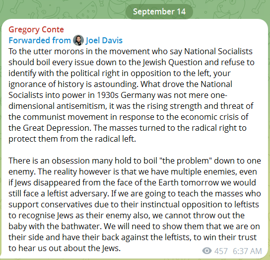 The recent convert to some retarded bastardization of national socialism is now picking fights with people like Eric Striker and Greg Conte, who have been self-described national socialists for the better part of two decades. The issue is that they just don’t understand that Tvue Fascism means being a rightoid who shills for anti-White zionist shill Charlie Kirk and always finds a reason, no matter how tenuous, to finger wag at people going too hard against Jew power.