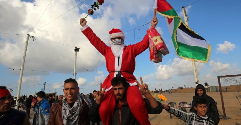 Israeli officers closed an event celebrating Christmas on Sunday, confiscating equipment, and arresting the Palestinian Santa Claus, as well as a DJ and a street vendor. In a video, police can be seen pushing the men to the ground and handcuffing them as bystanders watched.