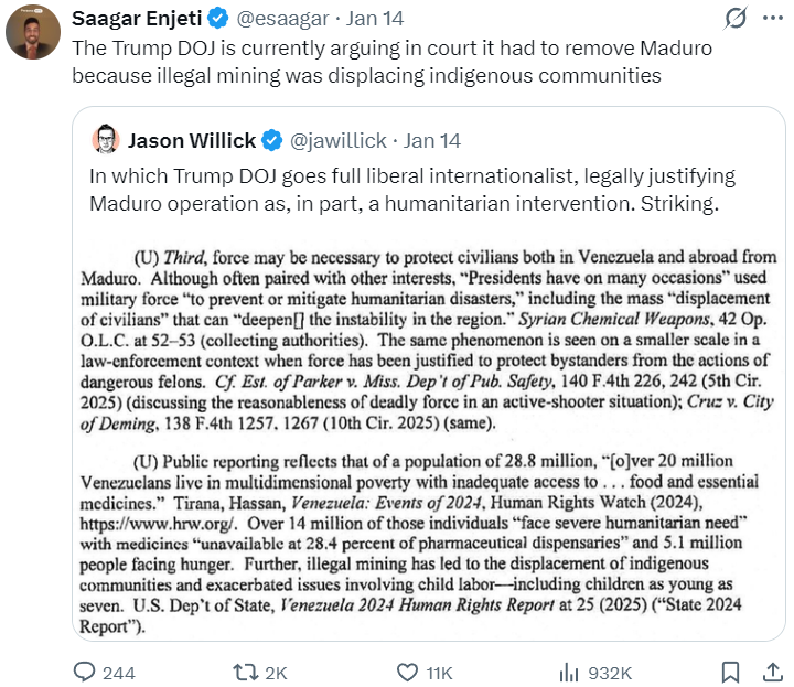 What demographic is jumping for joy that Maduro was kidnapped ostensibly on behalf of “indigenous communities”? Is this what Trump’s base is interested in?