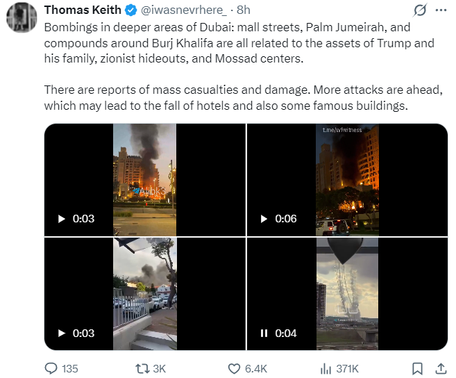 Until then, however, social media is filling up with images of luxury hot spots literally on fire as Iran continues to lob missiles and drones at them.