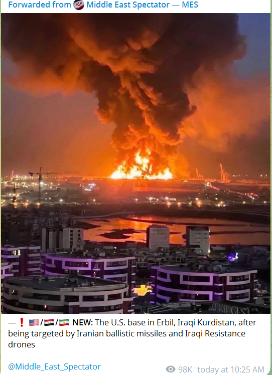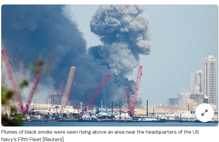 The US naval base in Manama, Bahrain is still on fire as of time of writing.