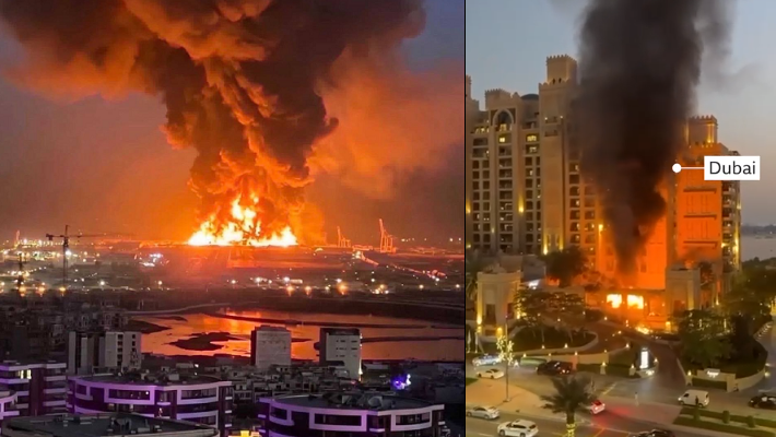 An airstrike on Dubai’s Fairmont The Palm Hotel sparked a fire while also spreading panic on the famous Palm Jumeirah artificial island, where many of the city’s wealthiest residents live.