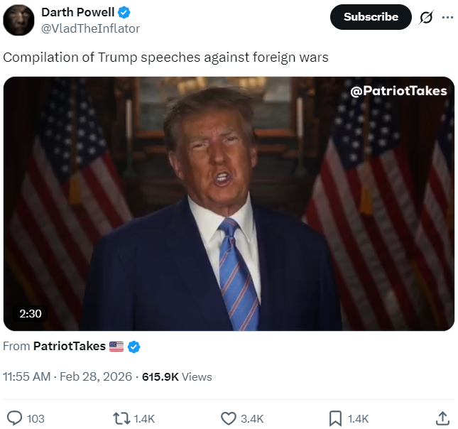 Speaking of Trump, how’s the guy who promised us to stay out of a war with Iran doing?