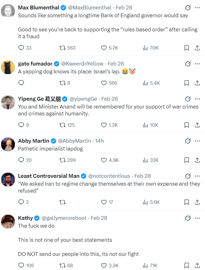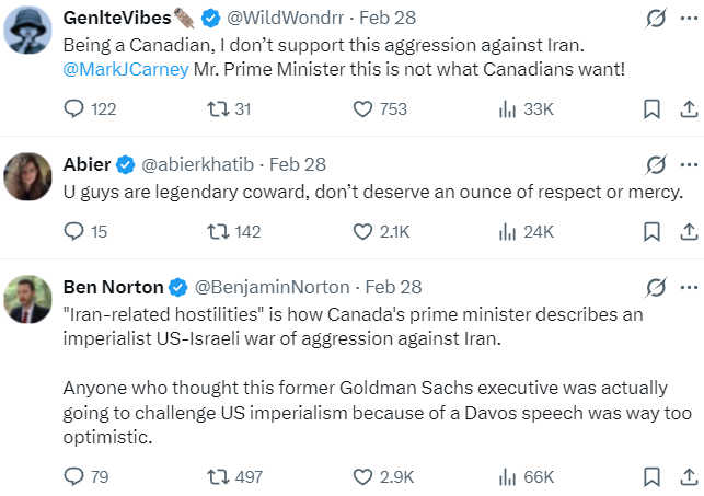 It’s barely worth responding to, but it was obviously a military accident that Iran downed a flight full of their own citizens, and the claim they intentionally murdered a bunch of their own people in order to vaguely terrorize Israel or whatever is a blatant slander that exists to justify Israel murdering their children, like they just did. Oh, and by the way, both of these Israeli lapdogs, Poilievre and Carney, made these statements after the girls were killed.