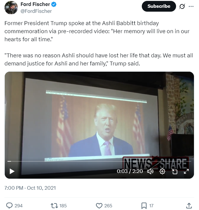 Ashley Babbitt died so that Donald Trump could promote to DHS Secretary a cretin who praised her killer and gave him a hug.