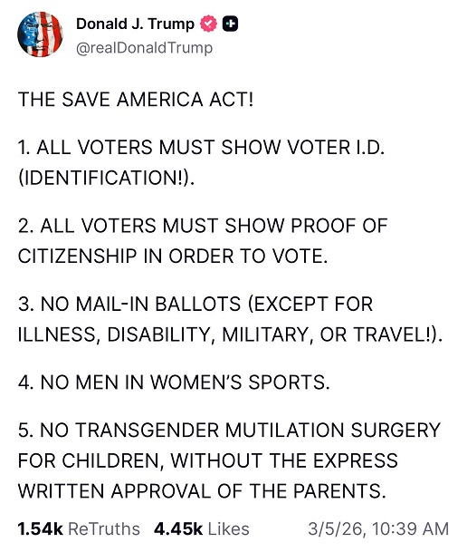 #5???!!!! “Without the express written approval of the parents” Trump now supports trans gender mutilation surgeries of children if their parents want it!!!!!
